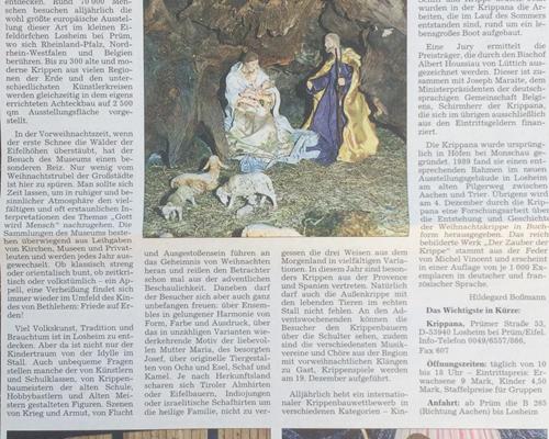 Al lange tijd besteedt de Franstalige pers aandacht aan de ArsKRIPPANA en zijn speciale tentoonstellingen en activiteiten. We hebben deze krantenberichten vlijtig verzameld en kregen ook regelmatig krantenknipsels van vrienden, aardige gasten en bezoekers.